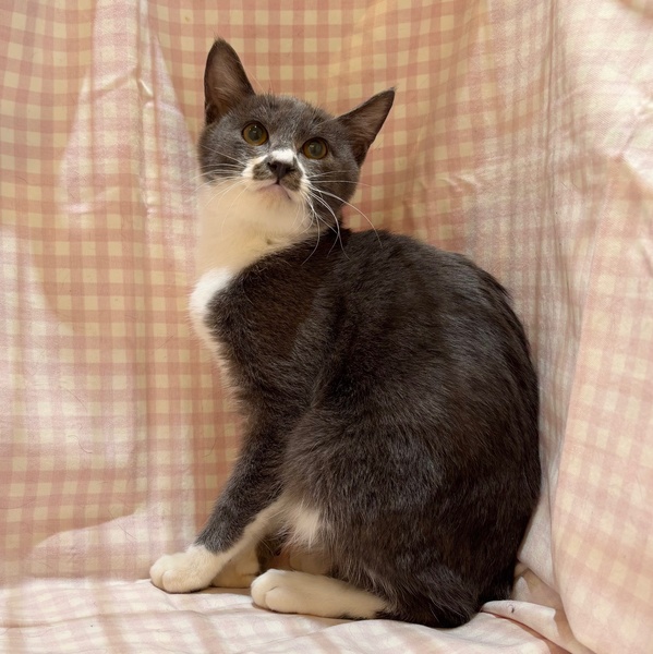 | 特徴(性格など) | 【仮名】ダウニーくん 【性格】ちょびヒゲがトレードマークのダウニーくん☆ 柔軟剤のような柔らかいグレー白の男の子です。 といってもシャイな性格で。。。 といっても遊んでもらうのが大好きで。。。 ジャンプが大得意なんです♪ ちゅーるモンスターのダウニーくんよろしくデス! 同世代のお友達がいるオウチや 先住さんのいるオウチが良いと思います。 ※1ピキ譲渡可 |