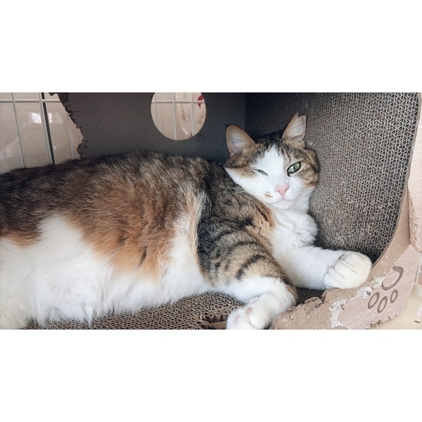 | 特徴(性格など) | 【里親希望の方が検討中です】 おっとりでお喋りなぽっちゃりさんです。 撫でられるのが大好きで、ゴロスリが止まりません。犬に追いかけられるのが嫌なようですが、人に対しても犬猫に対しても攻撃性はありません。 |