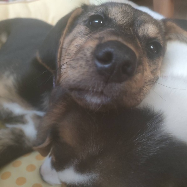 | 特徴(性格など) | ほぼ黒毛で顔や脚等に茶毛 すごく愛嬌があって楽しませてくれる元気なかわいい子です✳︎ |