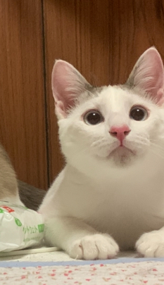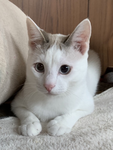 | 特徴(性格など) | 「りんちゃん」こと、りんごちゃんは、優しくて穏やかな白ねこの男の子です。 写真を見ていただいたら、表情からも伝わるのではと思いますが、 本当に穏やかで、優しくて、控えめで、静かなぬくもりがあり、人懐こく、甘えん坊で、繊細で、ピュアでーー 得難い性質の猫、それがりんちゃんです。 今までたくさんの猫を保護し世話してきましたが、りんちゃんほど「やさしい」「おだやか」という言葉がふさわしい猫は見たことがありません。こんなに優しい猫がそばにいてくれる生活ができたら、それを幸せと呼ぶのだと思います。 シャムmixですが、白猫に近いです。 人が大好きで甘えん坊です。でも甘えるのでもグイグイ来るのではなく。気づくとそばに寄り添っていてくれるような子です。他の子たちのうしろから、「僕も」という感じで、甘えにきます。 遊ぶのも大好きです。お気に入りのおもちゃが出てきたら張り切って追いかけます。そして捕まえると、必ず持ってきてくれます。本当に愛らしいです。 白い毛並みは艶やかで柔らかく、美しいです。手触りはきょうだいの中で一番良く、なでなでをすると癒されます。お顔もとってもハンサム、美男子です。 たくさん遊べる一方で穏やかに静かに過ごせる時間や空間もあり、控えめなので優しく目をかけて甘えさせてくれる家族にお迎えいただければ嬉しいです。 ●月齢:推定6か月 ●性別:男の子 ●健康状態:良好。とっても元気です。 ●エイズ・白血病陰性 ●ノミダニ寄生虫すべて駆虫済み ●去勢手術済み ●トイレ指定の場所でちゃんとできます。 きょうだい猫とたくさんの人と触れ合いながら、愛情たっぷりに育てられましたので、人に対する基本的信頼がしっかりできています。とてもスムーズに新しい家庭に順応できると思います。 初対面の人に対しても逃げたり威嚇したり噛んだりしません。診察で口や耳をしっかりと検査されても、注射をされても、暴れたりせず我慢できるお利口さんです。 りんちゃんは特に、優しいいい子で、人を信頼しているので、苦いお薬もスムーズに飲んでくれたり、本当にいい子です。 月齢的に性格や健康状態がはっきりしており、問題行動のない点についても安心してお迎えいただけることが、成長後期以降の子猫を迎えるメリットです。 人が大好きで、甘えん坊。素直に愛情表現できるこの子にあたたかな家庭を与え、終生、家族として大事にしてくださる方、ぜひご連絡をお待ちしています。 |