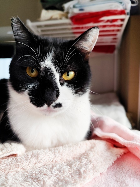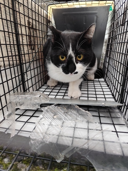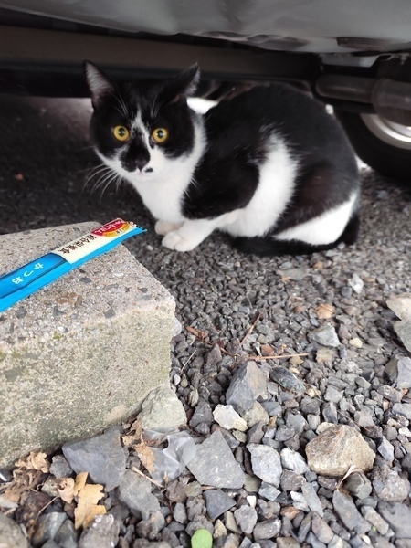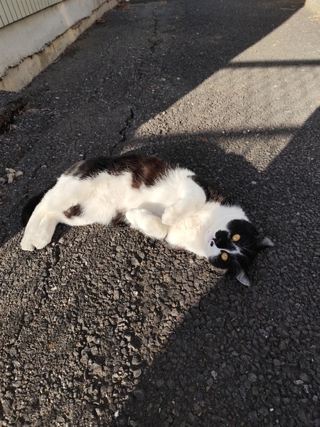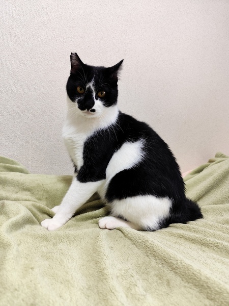 | 特徴(性格など) | 黒白猫、鼻の中心は黒、太めで先端が45度くらい曲がったしっぽ、金目色、右耳カット | ||