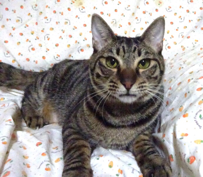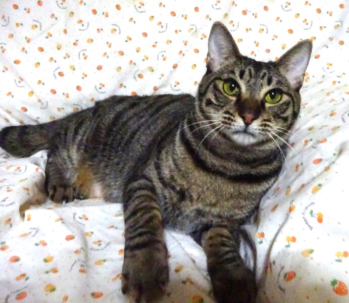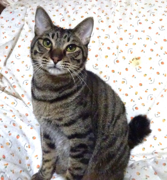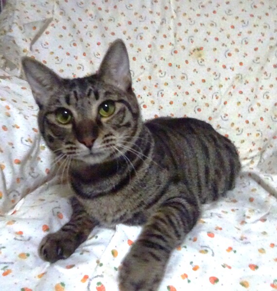 | 特徴(性格など) | 仮名: 水月くん、オス 毛色: キジトラ、 尻尾短め 性格: 保護時からビビりで、兄弟の影になるように隠れていました。 触れるようになるまでも時間がかかり、なかなか気を許さない様子でした。 兄弟が貰われていってから一人になり、少しづつ触らせてくれるようになりましたが、抱っこ出来るようになるまでに半年位はかけて、ゆっくりと馴らしてきました。 今は、抱っこすると長い時間抱っこされて、甘えてきます。 夜はケージで寝ていますが、フリータイムには他猫と一緒に遊んだりしていますので、他猫ともうまく付き合えていると思います。 ご飯タイムにご飯を持っていくと、自分のケージに入って待ちます。 それ以外でもケージに入れる時は抱っこして入れられます。 ただもともと怖がりですから、譲渡会など大勢人が集まるところ、違う環境などは怖がると思います。 ご理解下さり、少しゆっくりと水月くんのペースに合わせて頂けると甘えん坊になると思います。 お届けは千葉県内で千葉市幕張より車で1時間圏内でお願い致します。 検便済 駆虫済 3種混合ワクチン済 猫エイズ・白血病ウィルス検査は共に陰性 |