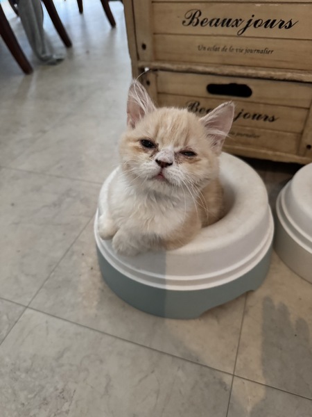 | 特徴(性格など) | 名前(仮): みかど 性別: オス 種類: スコティッシュまたはマンチカン 毛色:クリーム 年齢: 2024/11/24生まれ 体重: 1.3キロ 性格: フレンドリーで好奇心旺盛 トイレ: システムトイレ 日常の様子:子猫達と遊んで過ごしています。犬とも大丈夫です。 好奇心旺盛です。 人は好きで甘えん坊さんです。 お手入れ:シャンプータオルでこまめに拭いて、ブラッシングで清潔を保ってください フード: ロイヤルカナン 保護日: 2/11 健康状態 抗体検査:(FIV・FeLV)マイナス ワクチン:3種混合接種済み (2回) マイクロチップ:装着済み 避妊・去勢:適正な時期に里親様でお願いします。 その他:聴診・検便 異常なし、ノミダニ駆除済み・駆虫薬投与済み |