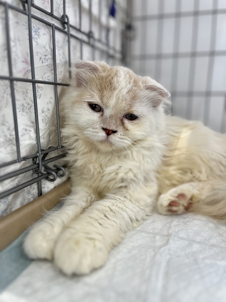 | 特徴(性格など) | 名前(仮): ゆらぎ 性別: メス 種類: スコティッシュ 毛色:クリームタビー&ホワイト 年齢: 2025/1/5生まれ 体重: 1.2キロ 性格: 怖がりな一面はありますが、好奇心旺盛で人にも犬にもフレンドリー トイレ: システムトイレ 日常の様子:子猫達と遊んで過ごしています。犬とも大丈夫です。 好奇心旺盛です。抱っこされるとグルグルいっています。 お手入れ:シャンプータオルでこまめに拭いて、ブラッシングで清潔を保ってください フード: ロイヤルカナン 保護日: 2/11 健康状態 抗体検査:(FIV・FeLV)マイナス ワクチン:3種混合接種済み (2回) マイクロチップ:装着済み 避妊・去勢:避妊手術済み その他:聴診・検便 異常なし、ノミダニ駆除済み・駆虫薬投与済み 特記★ディールちゃんの子供ではるあちゃんとちから君の兄弟です。 |