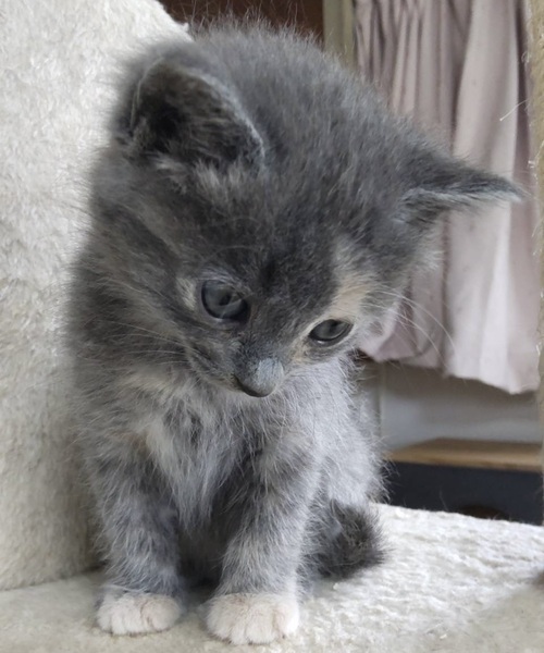 | 特徴(性格など) | ウランちゃん。 生後1ヶ月のときに、施設の近くのお宅で保護されました。 グレーと白の中毛で、ロシアンブルーミックスなのではないかと思われます。 ウランちゃんを温かく迎えてくださる方を探しています! (一緒に保護されたアトムくん、れいなちゃんも募集中です!) 少しでも気になられましたら、お気軽にご連絡くださいね。 |