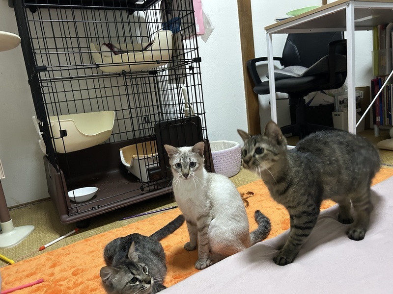| 譲渡費用(医療費、交通費など) | 福岡からお受け入れした子達なので羽田空港までお迎えに行っています。 医療費、食事代、運搬費等込みで4万円 ワクチン2回接種 毎月のノミマダニ駆除 お受け入れ時はお腹の駆虫 エイズ白血病検査 去勢手術済 |