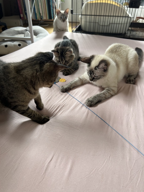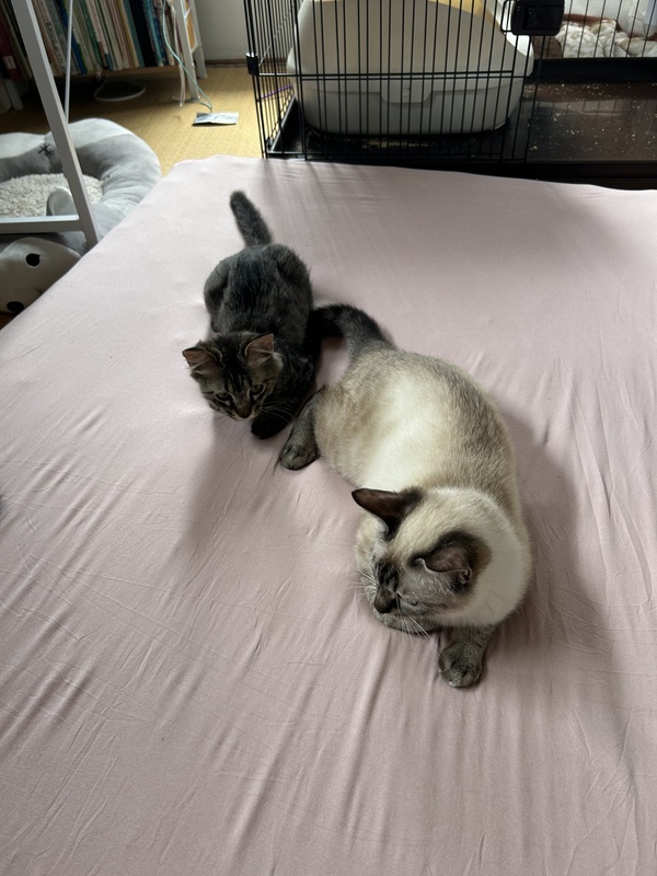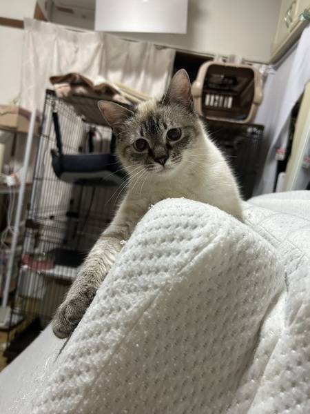 | 特徴(性格など) | シャム風ブルーアイの困り顔ラテペーちゃん 控えめでおっとりな性格でご飯をあげてもすぐには食べませんが 少し経つとみんなに混じってもぐもぐ 遊ぶのも好きだけど、じっくり観察してからやってくるので のそのそのそのそ 撫で撫で抱っこOKですが、触って欲しいアピールはまだこれからです。 じっくりゆっくりラテぺーのペースに向き合ってくれる里親さん募集中です。 |