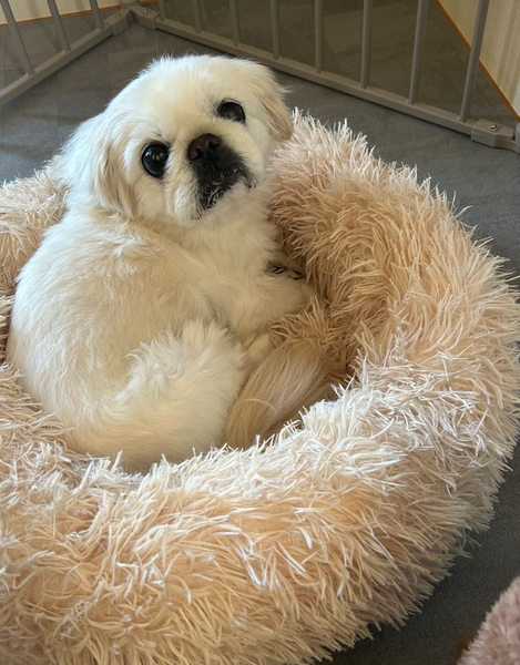 | 特徴(性格など) | 【仮名】らむね 【性別】女の子 【年齢】推定年齢7〜8歳 【毛色】白 【体重】5.8kg (保護時) 5.8kg (2025年3月) 【募集に至るまでの経緯】 個人より 2025/1月保護 ◎性格・癖・注意事項など◎ 【人に対して】 性格は控えめでおとなしい。動きは活発。 人が大好き。子供から大人までフレンドリー。抱っこすると少し緊張します。 【犬に対して】 目が見えづらいので匂いが気になれば、大型犬にも小型犬にも寄っていきます。自分に近づいてくるのはOK。 【他の動物に対して】 不明。 【留守番】 ケージ内で問題なし。 【トイレ】 排泄回数が少なめ。あちこちでマーキングはしない。外排泄も可能。 【散歩】 まだゆっくりだが、歩ける。ドッグランでフリーにすると走ります! 【お手入れ】 お風呂、ドライヤー怖がるけど、やらせてくれます。 耳掃除、爪切り少し嫌がるが、OK。爪は神経が長く、巻きやすいので定期的に切る事が望ましい。 目薬、体拭き、ブラッシングやらせてくれます。 【車酔い】 なし。 【好きな事】 撫でられる事。ごはん。おやつ。 外が好き!人が好きで近寄って甘えます。 寝ること。怖い時はお気に入りのベッドに納まって様子見しています。 【嫌いな事】 ドライヤーの風、音。掃除機。 【その他の注意点】 ○皮膚はベタつきやすいが、お手入れで改善可能。 ○めやに、膿が保護当時からずっと出ていた。抗生剤の目薬を1週間したが、劇的な改善はない。しかし、めやには減った。眼球に傷もあり、左眼は見えていない様子。視力はぼんやりと感じる程度で急に触るとびっくりする。目も重度ドライアイ。ヒアルロン酸目薬をしながら様子見。 ○ 心雑音あり→エコー済み 僧帽弁閉鎖不全症 ・逆流軽度 A ・心臓肥大低度 ギリギリ数値内 2/6の検査段階で、発症初期と診断 ◎健康チェック結果◎ 【ワクチン】 :2025年3月20日頃予定 混合ワクチン6種 【不妊・去勢手術】:2025年3月6日 鼠径ヘルニア、歯石除去、歯茎縫合手術済 【血液検査】 :2025年2月6日 済 【フィラリア】 :2025年2月6日 済 陰性 【検 便】 :2025年2月6日 済 陰性 ☆らむねはペキニーズレスキューに所属しております。 里親募集時はペキニーズレスキュー代表と連携しながら進めていききますのでご承知おきください。 |