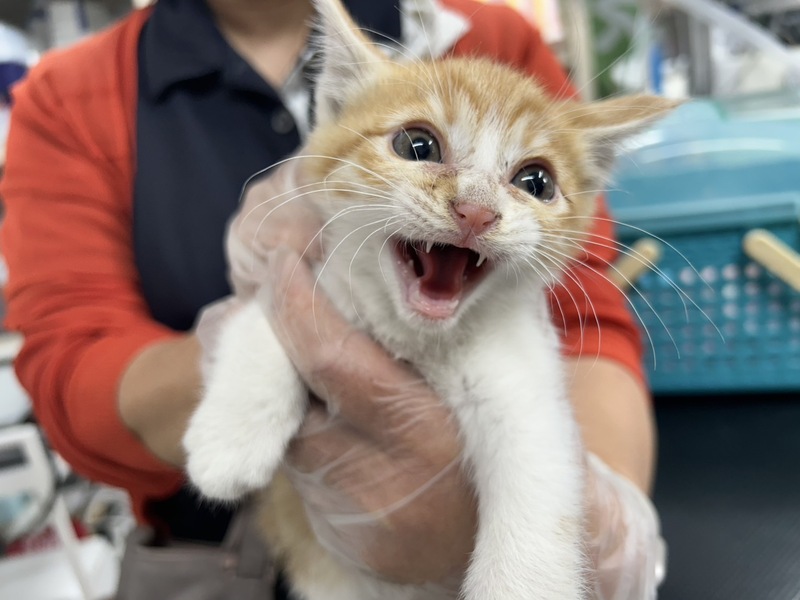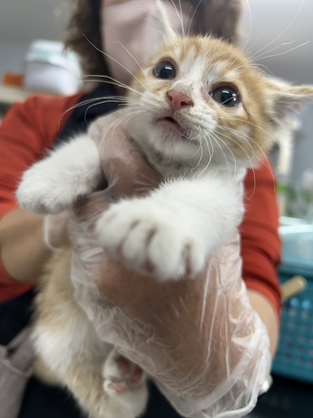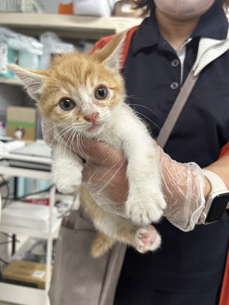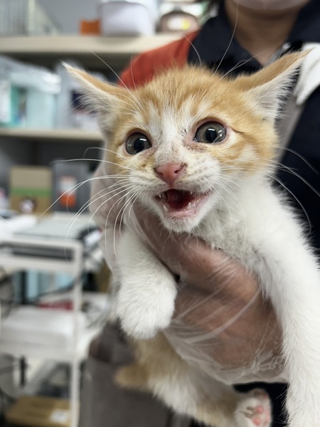 | 特徴(性格など) | 茶白、オス、生後2ヶ月くらい。 とても元気がいいです! まだ保護したばかりで怖がっているのでフーシャー言っていますが、噛み付いたりはしないのですぐに慣れ、日に日にきれいになっていくと思います。 健康状態良好。 ご飯もよく食べ、ウンチもきれいです。 まだ不安なようで大きな声で鳴いています。 ノミ・ダニ駆除済み。 ウィルスチェックはまだ生後2ヶ月のため簡易検査では母猫の抗体が検査に影響することもありますので、 ハッキリ結果がわかるPCR検査を5/16に受け、現在結果待ちです。 10日前後で結果が出ます。 |