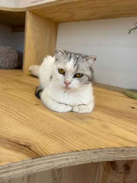 | 特徴(性格など) | 気まぐれな猫らしい性格のまいまいちゃんです! ちょっぴり臆病な性格で自分のペースを大切にするマイペースな女の子 繊細な女の子なのでしつこく触られるのは苦手 ほどよい距離感で過ごせるおっとりさんです☺️ 日向ぼっこが大好き☀️ 白グレーの立ち耳スコティッシ、小柄でとってもかわいいです! |