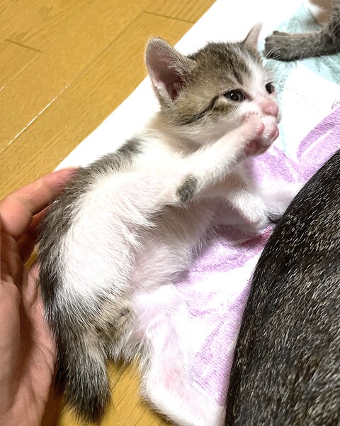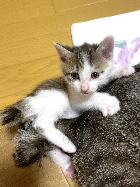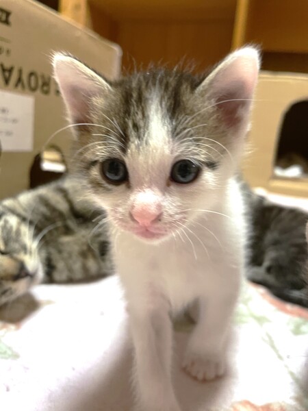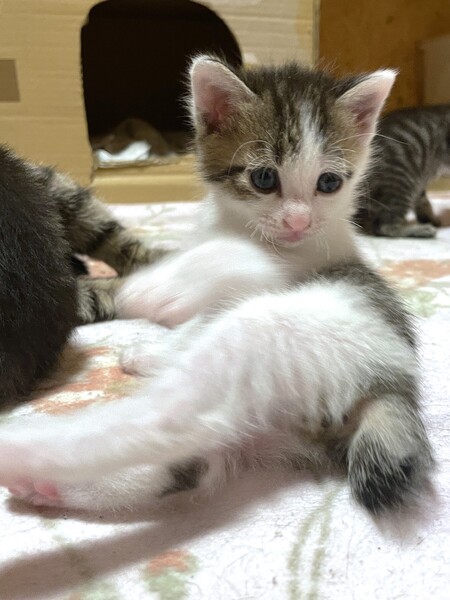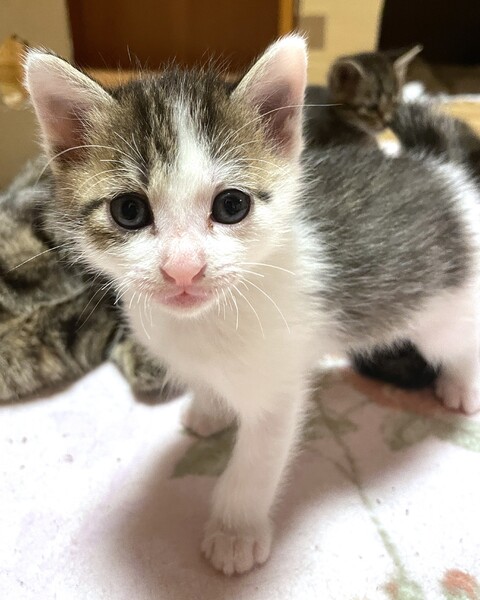 | 特徴(性格など) | 【仮名】おもち 【年齢】2025年4月9日生れ 【性別】オス 【ワクチン】6/9に一回目を接種予定 【駆虫】6/9に実施予定 【去勢手術】未 【ウィルス検査】未 【性格】みんなが寝ていても一匹だけで遊んでいたり、逆に一人で寝ていたり、マイペースでのんびり屋さんな男の子です。この兄妹はどの子もとても人懐っこくて人間大好きな甘えっこちゃん達です。兄妹仲良く一緒に成長中でフレンドリーな性格なので、多頭飼育にもおすすめの性格です。お腹の上に乗ったり首元にくっついてきたりスキンシップも大好きで愛嬌がある性格良しの子達なので、どんな家庭でも太鼓判でお勧めできます♪家族として終生大切にしてくれる里親さんを探しています。 ※現在母猫の元で授乳中です。譲渡は離乳して生後2ヶ月となる6/9以降になります。 兄妹:あんこ♂、かりん♀、きなこ♀、おもち♂ |