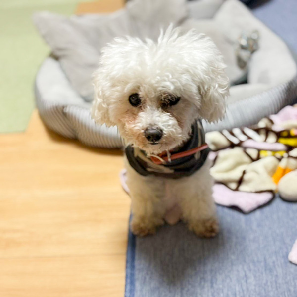 | 特徴(性格など) | 名前:ベーグル(♀) 犬種:トイプードル 年齢:12歳(2012.5.29生まれ) 体重:2.2kg 性格:穏やかでマイペース 体調:歯はないですがドライフードも食べています。 トイレ:シートでできるのは70%程度でトレーニング中です。 留守番:問題なくできます。 散歩:朝晩20分づつくらい行き人のテンポに合わせて上手にできます。 預かりから一言:小さな身体でちょこちょこ歩く姿がとても愛らしく、人が座ると膝の上にちょこんと座ってきます。 他の犬とも仲良く過ごせて、人にも犬にもくっついていたい甘えたです。 穏やかにゆったりとした環境でまったりと甘えることができる暮らしがベーグルに合っているように感じます。 |