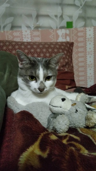 | 特徴(性格など) | ミィーちゃん ↓ しっぽと顔だけ三毛 1歳10ヶ月 花ちゃん ↓ グレー白ハチワレ 2歳 |