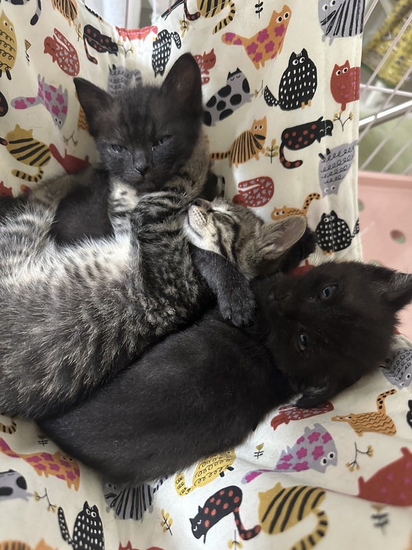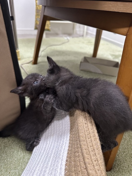 | 特徴(性格など) | 黒だけど所々白毛がある不思議くん 6兄弟の中では真ん中くらいのサイズ。 離乳食もそこそこに僕はまだミルクが好きでしゅ!! とこだわりが強く、ミルク大好き。 ちょっぴり強情なくらい、介助なしでは離乳食を食べなかった ↓ 5/19現在は、離乳食をアムアム言いながら食べ 1番小さい兄弟に抜かれまいと頑張っています。 全体的にはみんなで遊びますが 1人で違う場所へ大冒険に出向く様子があります。 |