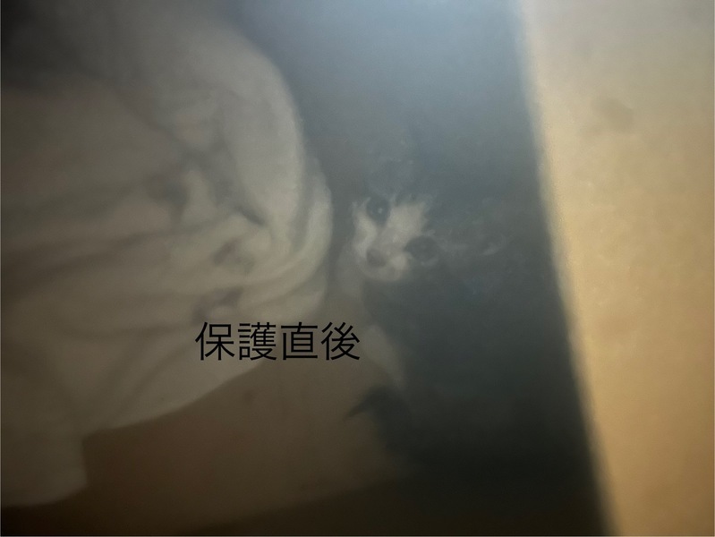 | 里親募集する理由 | 夜雨の中車のボンネット内で鳴き声を聞き車を停止して3時間かけて保護。 JAFの方が無理やり引っ張り出したので人間の匂いがついたことで野良には返せないと思い、一時預かりの状況。 寮生のため引き取りたくても引き取れません。 2週間が限界なので至急募集中。 |