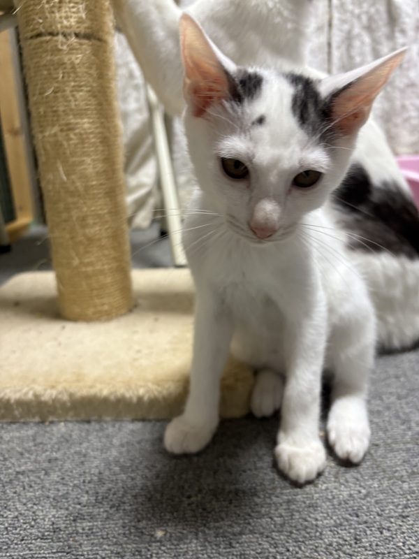 | 特徴(性格など) | 白にお顔とシッポにブチがある男の子の兄弟です。 シェルターで生まれ育ったため、人間も大好きです。 エイズ・白血病 陰性 |