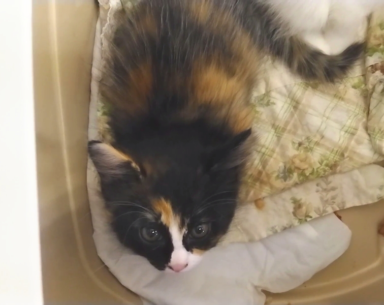 | 里親募集する理由 | 野良猫捨て猫巡回中に、兄弟姉妹で捨てられているのを発見しました。 一番元気な黒ミケちゃんから募集を開始しました。 |