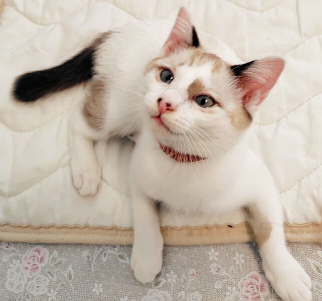 | 特徴(性格など) | 生後約2ヵ月半 女の子 体重 1.4kg ノミ・ダニ無し 検便実施済(虫無し) 血液検査未実施(母猫からの抗体を持っており、正しい結果が出ないため) ワクチンは近日中に第1回目を接種する予定です。 とても活発で人懐こいです。 オモチャを咥えて持ってくる賢い子です。 おトイレも所定の場所で出来ます。 保護した時に結膜炎に罹っていましたが、点眼薬と軟膏の塗布で随分良くなりました。 両目の大きさに僅かな差異はありますが、手持ちの点眼薬・軟膏を使い切って治療を終える予定です。 |