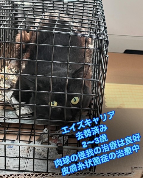 | その他(譲渡条件など) | エイズキャリアなので、単独飼いやキャリア同士の多頭飼いの方、完全室内飼いと脱走防止対策の厳守お願いします。 身分証の提示とLINE等で譲渡後の様子を月に何度か教えていただけると安心します。 |
