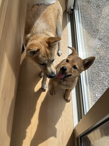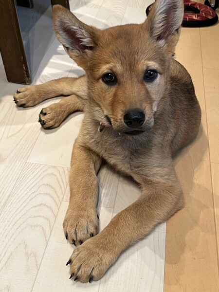 | 特徴(性格など) | 4匹姉弟ともにビビりが強かったため 人馴れの進んだ先住犬のいるお家に人馴れ修行に出ました。 2.5ヶ月の段階で体重は7.2kg 好奇心旺盛のやんちゃで元気な男の子です。 先住犬とじゃれあったり、リビングを全力疾走したり、オモチャでひとり遊びしたりと楽しいことをどんどん見つけ出しています。 トイレは教えていませんが成功率は8割くらい。 遊びに夢中になっていると何もないところでしてしまったり、タオルの上にしてしまうことがあります。 しかし、なぜかトイレシートを最初から認識しており、フリーにしてもトイレシートを探してそこにできる天才犬です。 歯が痒い時期で、いろいろなものを噛みたがりますが、とにかくオモチャが好きなため、誤飲の可能性があるものなどを噛む時はオモチャとすり替えるとすんなりオモチャで遊び始めます。 また成犬になったら変わるかもしれませんが、今はとてもお話好きです。 特にご飯の準備をしている時や、眠い時、排泄の直前などはよくしゃべります。 音域が広くいろんな声を聞かせてくれてとても面白いです。 動いている人は少し怖いようです。 座って動かなくなった間に近づいて情報収集しています。 情報が収集できれば、抱っこをさせてくれる、手足を拭かせてくれる、勝手に膝の上に乗ってくる、ただただかわいい子犬ちゃんです。 撫でられ好きの寂しがり屋なので、将来は人間大好きの甘えん坊になりそうです。 他犬も大好きで、先住犬とはストーカーして行動を真似したり、しつこいくらい関わったりしています。 |
