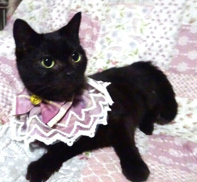 | 特徴(性格など) | 仮名: ラブちゃん、 メス 毛色: 黒猫、尻尾長い 性格: 人見知りなく、人が好きな子だと思います。 多頭飼いでしたから、他猫ともうまく付き合えますが、猫好きな感じではなく、マイペースに他猫とも一緒に過ごせます。 好奇心旺盛で高い所にも行ったりします。 食が細くて、小柄で痩せていましたが、今はキチンと3食食べるので少し太ってきましたが、元々が小さめです。 少し涙がでやすく、涙目になりがちですが、特別に治療が必要ではないようです。 人にはスリスリの甘えん坊で、猫飼い初心者の方でも大丈夫ですが、トイレに問題があります。 トイレがない環境だったようで、システムトイレや猫砂などが使えません。 段ボールなどの紙にしてしまうので、トイレにトイレシートを敷いたところ、そこで出来るようになりました。 トイレ横にもシートを敷いておくと、紙が足りないときは、自分でトイレにシートを入れて使います。 朝晩2回シートを変えてあげると良いようです。 今は、シートに落ち着いています。 お届けは千葉県内で千葉市幕張から車で1時間圏内を希望します。 検便済 駆虫済 3種混合ワクチン済 避妊手術済 猫エイズ・白血病ウィルス検査は共に陰性 |