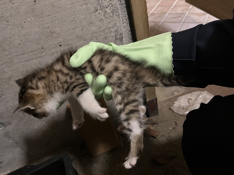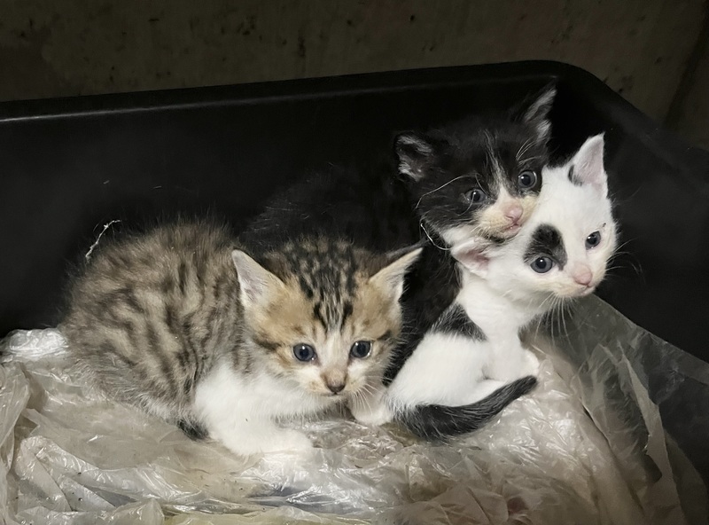 | 特徴(性格など) | 綺麗なお顔の女の子。 尻尾が短いのが可愛いです。 兄弟を守るため、前に出て弱々しいシャー!をしていました。 とっても可愛い子です。 このままでは地域猫としてお外で暮らすことになってしまう子達です。 近くには国道が通り、事故に合う子も少なくないそうです。 できれば、お家の中で暮らして欲しいと思い、家族を募集します。 里親決まりましたら、医療ケアと人慣れを済ませてお届けします。 4兄弟です。他の子達もぜひご覧ください。 |