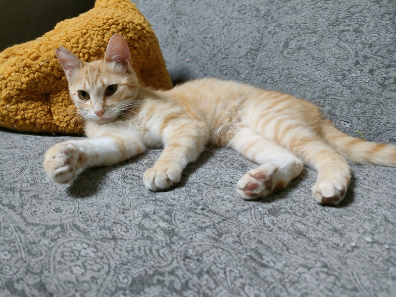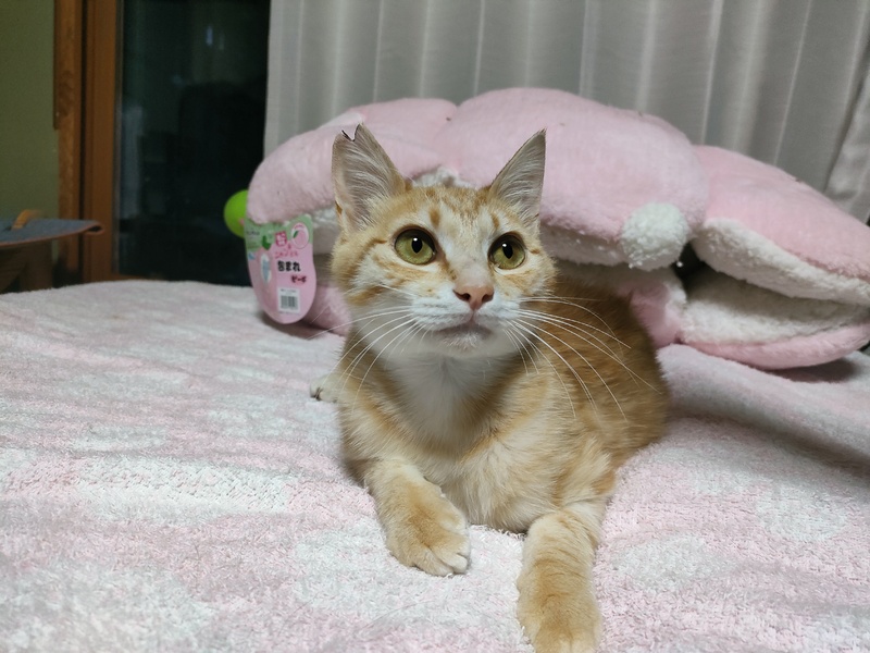 | 特徴(性格など) | とても可愛いお顔ですが終始遠慮がちで自信なさげな性格です。人にも猫にも好き嫌いなく、慣れるとすりすり甘えたり、ごはんおねだりしてきます。 先住猫ちゃんの遊び相手や猫飼育初めての方、お留守番が少し長めの方にもオススメです。アポロくんがもっと自信持って甘えてくれるよう見守ってくださる方大募集中です! 尾長茶トラ 3.2キロ(6/1現在) |