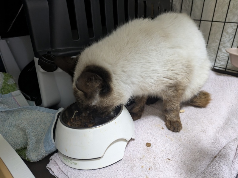| 特徴(性格など) | シャム猫ミックス、目の色は黒。 外生まれ外育ちで人がご飯くれるのは 理解しているも触られるの苦手な女王様です。 |