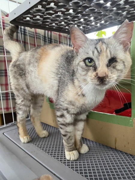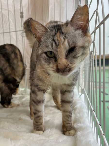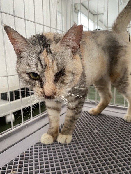 | 特徴(性格など) | 人慣れしています。懐っこい子です。 写真5枚目で一緒に写ってる三毛猫さんとはとても仲良しです(できれば二匹一緒に…) 環境の良くない場所な上、体調悪くしても医療にかけることもしなかったこともあり、左目が萎縮してしまっています。生活するには支障ありません。 エイズ白血病は共に陰性です。 誕生日は不明のため推定(5才くらいとのこと)です |