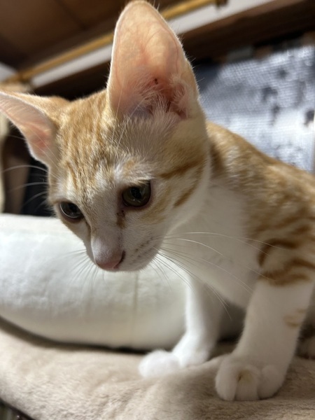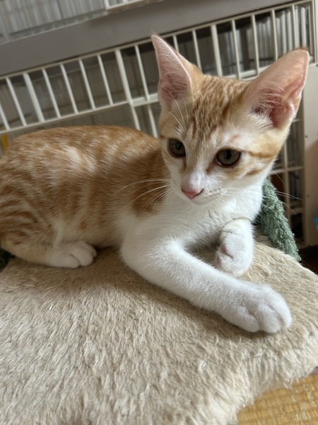 | 特徴(性格など) | とにもかくにも甘えん坊 お膝が大好きで乗ってきます 元気もいっぱい食欲旺盛の茶白の男の子 七宝(しっぽう) アニメ、犬夜叉の七宝にそっくりなことからお名前をつけました。 ミルクから育てているので生粋の人好きで 小さいことも遊べます |