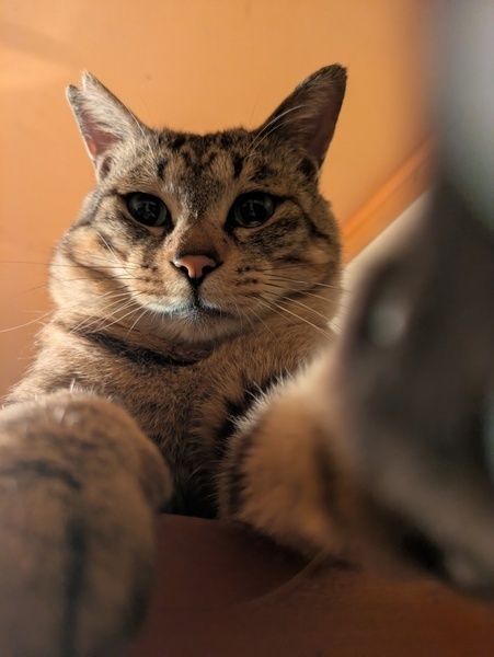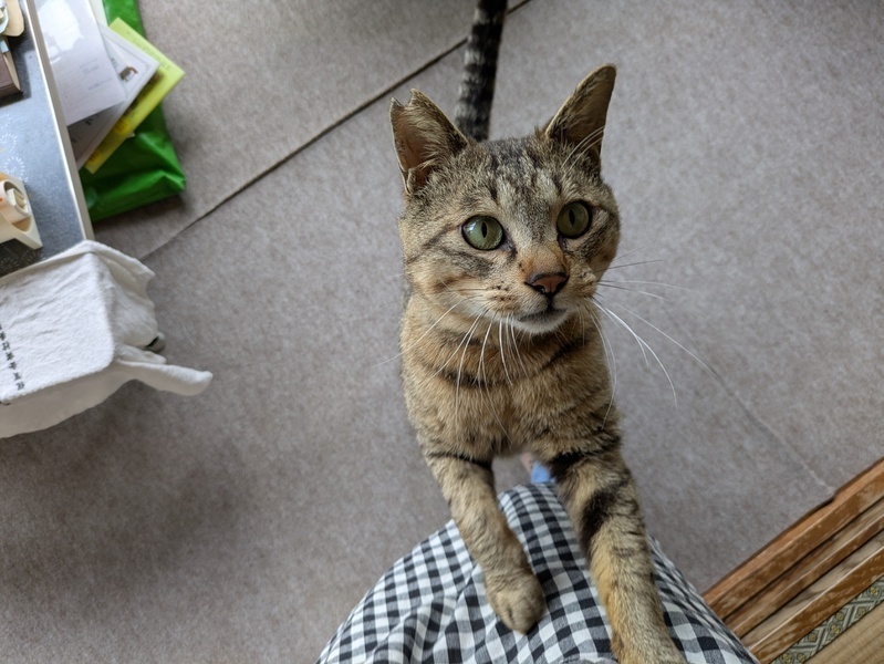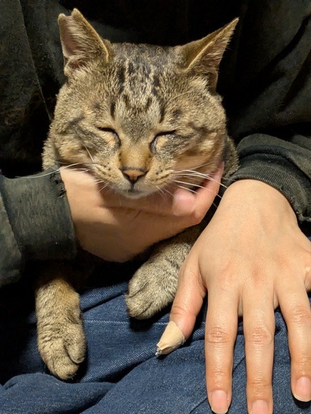 | 特徴(性格など) | とても甘えん坊のキジトラさん(推定5〜6歳) 保護してから1度も威嚇もパンチもガブリもしない優しい元ボス猫さんです。 抱っこや膝枕も好きで自ら膝の上にのってきて甘えてきます。 人が横たわると胸の上にのって甘えながら寝ます。 ツンデレ系ではなく、デレデレ系男子。 人見知りせず甘えて追いかけてくるタイプの子です。 夜9時頃になるとスヤスヤ寝始めます。 爪切りも抱っこで眠っている間にできます。 爪研ぎも上手に使いこなします。 唯一注意が必要な点は、まだお外に出たい気持ちがまだ残っていることです。 暖かい時期は窓の外に出たがり鳴くことがあります。 そのためお家の窓や扉に脱走対策を室内で万全にしていただける方にお願いしたいと思っております。 猫エイズ陽性ですが発症していません。 穏やかに過ごしていれば終生発症しないまま天寿を全うする子も多いです。 人にも犬にも感染は一切しません。 体格は大きめの骨太タイプ(5.7キロ) 声は大きめ。おしゃべり上手です。 食欲もあり、元気に遊んでいます。 トイレも上手にしています。 飼い主さんのお布団で一緒に寝る子です。 どなたか優しく甘えん坊なこの子に手を差し伸べてくださる方はいらっしゃいませんでしょうか。 どうぞよろしくお願いします。 〇去勢済〇ワクチン済〇駆虫済〇血液検査済〇便検査済〇エイズキャリア〇白血病陰性〇マイクロチップ済 |