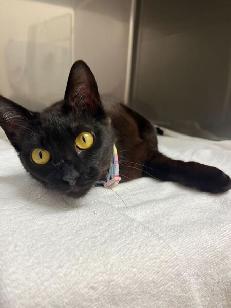 | 特徴(性格など) | 生後5ヶ月の黒猫の女の子サクちゃんです! ねこの森にはまだ来たばかりですが、とっても甘えん坊です。 スタッフが手を出すとなでなでをせがんできます! おっとり甘えん坊さんな女の子。 ワクチン、避妊手術は夏頃を予定しております! 現在は真菌の治療を行っていますが、とても健康です。 エイズ陽性のため、他のエイズキャリアの子たちと同じ部屋で過ごすことになると思います! 陽性ではありますが発症はしておらず、健康そのものです!ストレスフリーに過ごしていれば他の猫と変わらない人生を過ごせる子です。 |