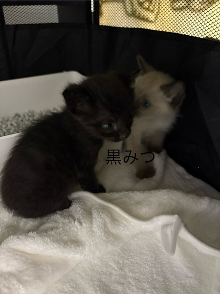 | 特徴(性格など) | こんな子いますよ〜♪ へ投稿おねがいします 黒みつ♂(420g) まめ♂(500g) 福♂(520g) 生後1か月の元気な子たちです 3匹ともミルクは卒業してカリカリ食べてます よろしくお願いします |