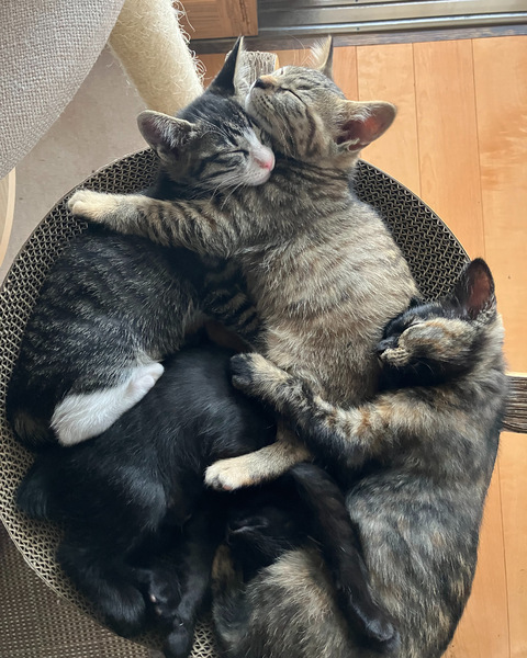 | 特徴(性格など) | キジ白(メス)-好奇心旺盛で甘え上手 キジ虎(メス)-ビビリでとっても優しい 黒猫-(オス)-よく食べ力も強い 甘えん坊 全員エイズ、白血病ともに陰性です。 写真のサビ猫は里親様決まりました |