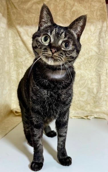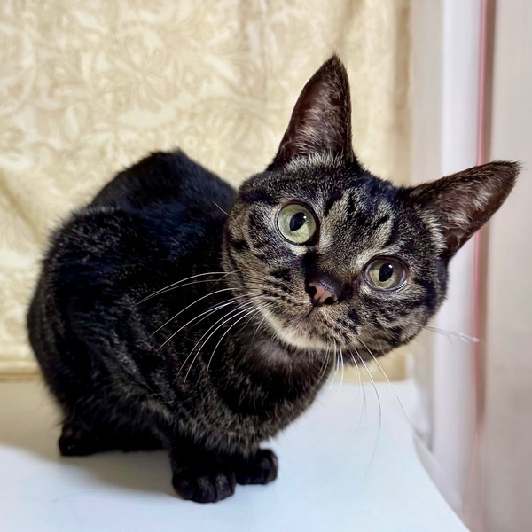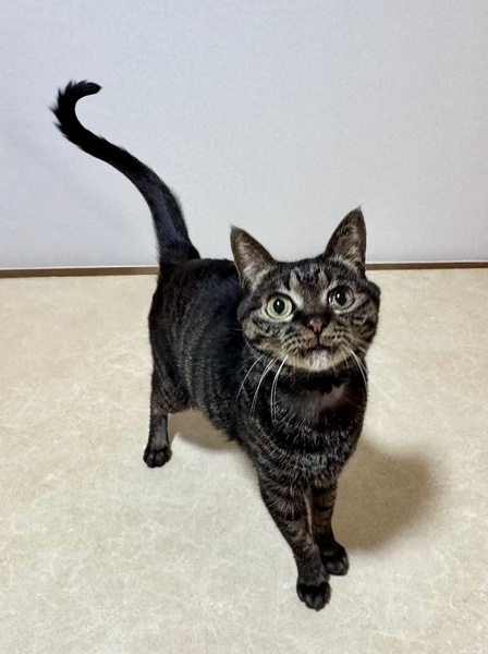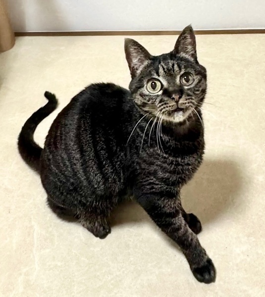 | 特徴(性格など) | 【仮名】ちとちゃん 【性格】艶やかな黒が濃いめのキジトラのちとちゃん♪ くりっとしたまん丸おめめがチャームポイントです♥ 人懐っこくて誰にでもスリゴロの甘えん坊です! 独りぼっちで孤独な時間が多かった為 とにかく人に甘えたくて遊んでほしくて仕方ないので、 たくさん遊んで1匹で可愛がって頂けると嬉しいです♪ ※1ピキ譲渡可 |