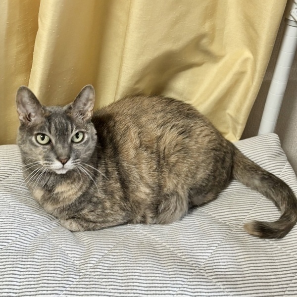 | 特徴(性格など) | 【仮名】タビーちゃん 【性格】パステルサビが魅力的なタビーちゃん☆ 人懐っこくて甘えん坊の女の子です。 来客があってもスリスリゴロンとお腹を見せて甘えたり、 名前を呼ぶとニャーンと返事をし、 膝に飛び乗ってくるお利口さんで抱っこも大好きです! 朝は起こしに来たり、夜も寝床にくっついて過ごしたり 普段はおとなしくじっとしていますので 一緒の時間をたくさん楽しめますよ♪ ※1ピキ譲渡可 |