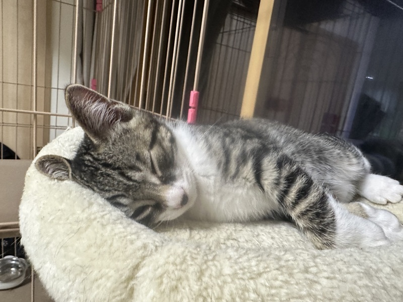 | 特徴(性格など) | キジ白の男の子 ママ猫が大好きで、いつもべったりしています。 わんぱくで優しい男の子です。 |