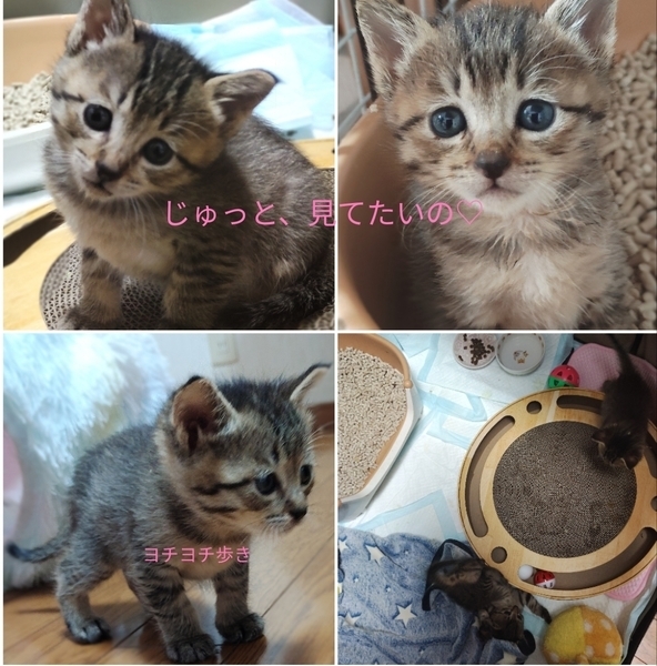 | 里親募集する理由 | 【経緯】TNR現場で保護しました。 賢いお母さんの子で、何度も出産し やっと今回親子で保護出来ました。 お母さんは、避妊手術済み。 お母さんの大切な最後の子供達 以前、幸せを掴んだ兄妹のように この子達にも温かい愛情に包まれながら スクスクと育ってほしく里親様を 募集致します。 |