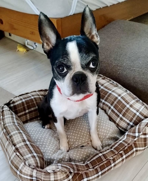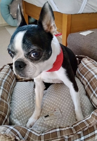 | 特徴(性格など) | ボストンテリア 女のコ つきちゃん 7歳 とっても性格がよくて甘えん坊です。 べったりくっついてきます。 お散歩大好きで、会う人や、犬とも仲良くできます。 お家の中でもおりこうさんです。 おトイレは、シートで上手にできます。 サークルやケージはあまり好きではありません… ちょっと珍しい犬種ですが、 性格的には、犬初心者の方でも大丈夫なぐらい、イイ子です。 |