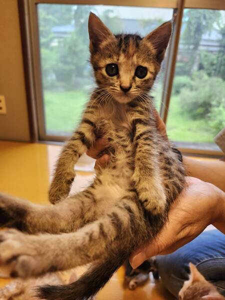 | 特徴(性格など) | 元気いっぱいのキジ猫ちゃん 淡い色のブラウンタビーです 同時保護5匹の中の一匹です |