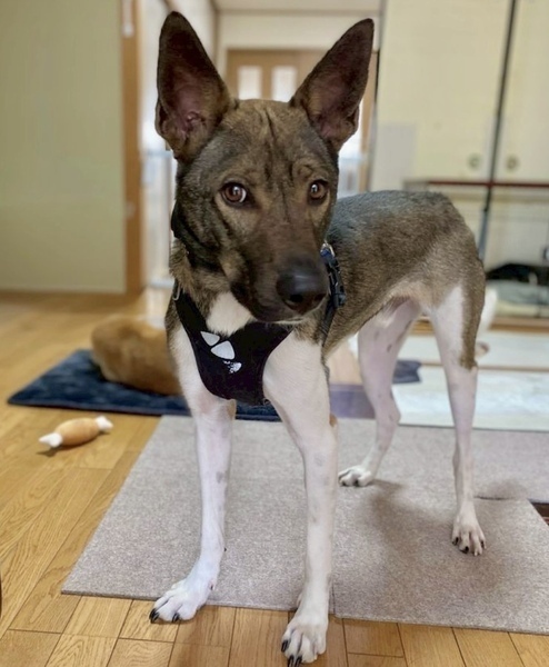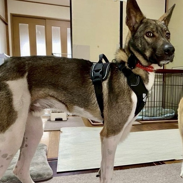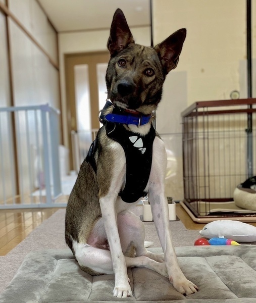 特徴(性格など) | ※GPS(エアタグ)、首輪・ハーネス・すっぽ抜け防止(ジョイント)等、当会よりプレゼントさせて頂きますので、必ず着用頂ける方のご応募をお願いします。 性格・特徴 【性格】 身体は大きいですが、とても優しい甘えん坊さんです。 遊んでほしくて「遊ぼう!」とアピールする姿も可愛らしく、 また犬用の噛むおもちゃでも上手に遊んでいます。 食べることも大好きで、おやつを食べる時は手からそーっと優しく食べてくれます。 他のわんちゃんに対しても攻撃性はなく優しいです。 野犬ちゃんのため怖がりやさんで初めての人には警戒しますが、慣れてきた人には甘えてきてくれます。かんた君のペースに合わせてゆっくり仲良くなって下さい。 【ご飯】 ドライフード(シュプレモでお願いします)150gを1日2回食べています。 フードは急な変更でお腹を壊さないよう、シュプレモでお願いします。 【お散歩】 まだお外が怖いようですので、徐々に慣れていくよう練習中です。 突然の物音に驚き、逃げてしまう可能性があります。 そのため必ず当会指定のネームカラー、ハーネス、ショルダーリード、すり抜け防止器具(すり抜け防止器具は当会よりお渡しします)を必ずご準備の上お散歩をして下さい。 当会では、全頭に脱走防止対策を行っており、トライアル中は当会よりお貸しいたしますが、トライアル中に必ずご準備いただくようお願い致します。 お散歩も少しずつ慣れてきてますが、突然の物音に驚いて、首輪もしくはハーネスが抜けてしまう可能性があります。日頃のトレーニングと、ダブルリードの徹底を宜しくお願い致します。 お散歩等お出かけの際に、抱き上げるシチュエーションがあった場合は、リードや首輪やハーネスを一緒に握りしめたまま抱き上げて下さい。車でのご移動は必ずクレートやケージに、入れていただくようお願い致します。 迷子札は、首輪に刻印式のIDカラーで装着して頂く事と、ダブルフック型ショルダーリード使用のお約束をお願いします。 【トイレ】 トイレシートの認識があります。引き続きトレーニングをお願いします。 トレーニングのご相談は承り、アドバイスさせていただきます。 【お留守番】 脱走やイタズラ防止をした部屋で、お利口さんに過ごしていますが、かんた君の過ごしやすいよう様子を見ながら、少しずつサークルでもできるよう練習します。 (ソフトサークルは禁止とさせていただきます) 【その他】 現在、他のわんこと共に生活をしていますが、環境によっては寂しくて鳴いてしまうことがあります。 少しずつですがいろいろな環境に慣れていくよう勉強中のかんた君です。 健康状態 ※ 医療に関しまして、当会では、里親様にお繋ぎするまでに、検査や手術、治療等のレスキュー団体で出来る最大限の努力の上で譲渡活動を行っております。ご理解頂ける方のみご応募ください。 名前 かんた君 犬種 ミックス 年齢 1歳くらい 性別 男の子 体温 39.0℃ 体重 19.1㎏ 心雑音 異常なし 検便検査 異常なし 血液検査 異常なし フィラリア 陰性 去勢手術 済み ノミダニ予防 済み 虫下薬 投薬済み(2025/4/15) ワクチン 接種済み(2025/4/15) 狂犬病予防注射 接種済み 畜犬登録 済み マイクロチップ 挿入済み |
