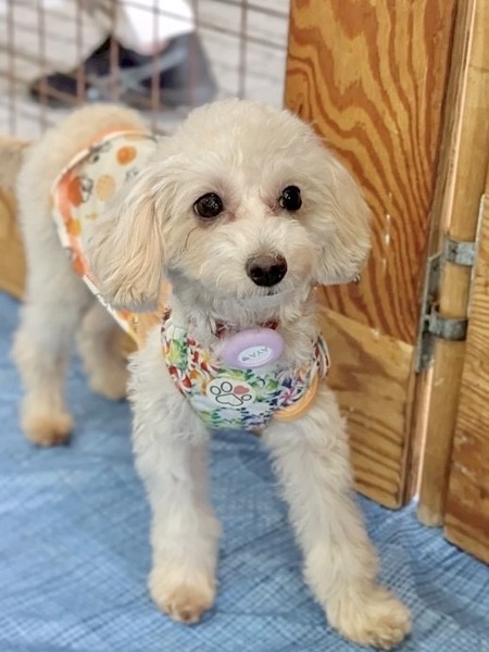 | 特徴(性格など) | 名前(仮): はるな 性別 : メス 犬種 : トイプードル 毛色:クリーム 年齢:2024年10月17日生まれ 体重:2.2キロ(痩せています。) 保護経緯:ブリーダーからの保護 性格:怖がりですが、好奇心旺盛です。人より犬が好きなタイプです。 トイレ: シートで排泄しています。 ケージでお留守番や就寝させるとうんちとおしっこを踏んでケージ内のシートもビリビリにしてしまいます。 散歩: 怖くてまだ歩けません。トレーニング中です。 日常の様子 : ケージが苦手なので終日フリーで過ごしています。一緒に保護されたすももちゃんと戯れあって遊んだり他の犬にくっついて寛いでいます。 お手入れ:毎月のトリミング・毎日のブラッシング・歯磨き・耳掃除・涙やけケアなど ※トリミング犬種なので、必ず毎月1回サロンでトリミングをして可愛く清潔にして頂ける方、それだけの経済的余裕がある方を希望します フード: ミシュワン小型犬用 保護日: 2025年6月12日 健康状態 フィラリア:陰性 ワクチン:5種混合接種済み マイクロチップ:装着済み 避妊・去勢:避妊手術済み その他:触診・聴診・血液検査・検便、異常なし、駆虫薬投与・ノミダニ駆除済み・スケーリング済み |