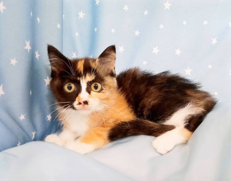 特徴(性格など) | 長毛気味の三毛猫ちゃんです。 お目目がまん丸でおとなしい子です。 |