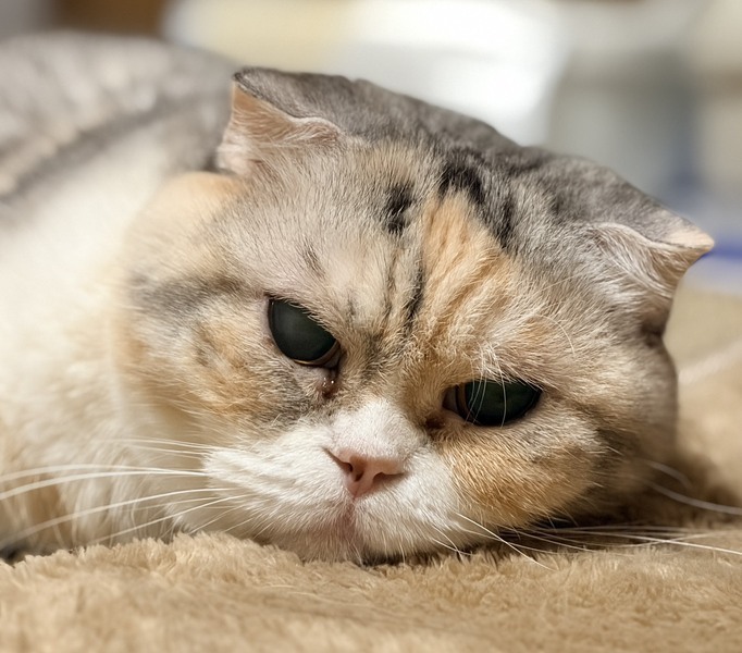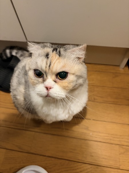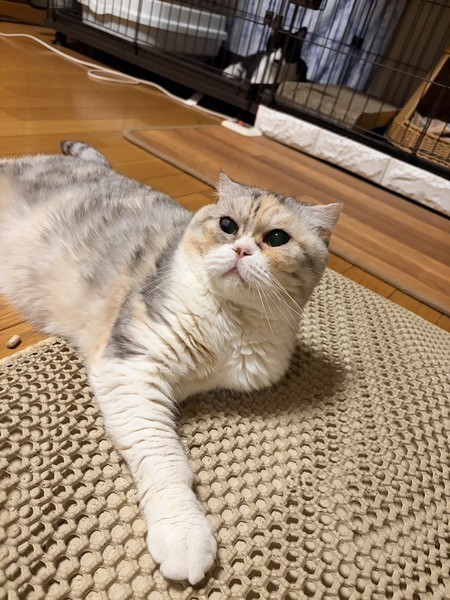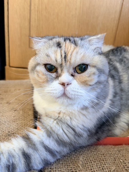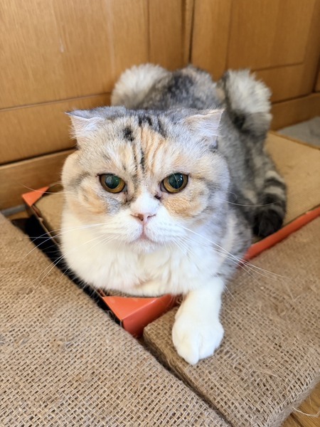 | 特徴(性格など) | ◆チャビスコちゃん 人馴れしている三毛スコちゃん ○茨城県内の廃業ブリーダーより保護しました。 ○推定7歳くらい(2025年7月時点)のスコティッシュ・フォールドの女の子です。体重は4.2kg(2025年12月時点)です。 ○尻尾は長くて真っ直ぐです。 ◯保護した後に目が見えにくいことが判明しました。原因不明ですが、先天的な障害である可能性が高いです。 ◯そのため上下運動がうまくできず、動きは少ないです。しかし、音を頼りに人に着いてきて、オモチャも音を頼りに遊べます。ご飯や水は匂いを頼りに探せます。トイレもちゃんと使えますが、たまにお尻がトイレ外に出てしまうことがあるので大きいトイレが良いです。 ◯人馴れはしており、撫でて欲しくてスリスリ甘えてきますが、抱っこなど身体を拘束されることをとても嫌がります。動物病院からは猫種の特有の先天性疾患が原因で腰が痛いために嫌がっている可能性もあるとのことです。 ◯人は好きですが他の猫はあまり好きではないので、1匹飼いがオススメです。 ★ワクチン接種済み、不妊手術済み。 ★猫エイズ、猫白血病ともに陰性。 ○YouTubeにも動画を上げています。こちらもご覧下さい。 「チャビスコ」 https://youtu.be/tEo7zUBDP7o https://youtube.com/shorts/cuhNQrnIz5Q ☆単身のかたはご相談ください。 ★★お見合いを設定することも可能です。まずはお申込みください★★ |