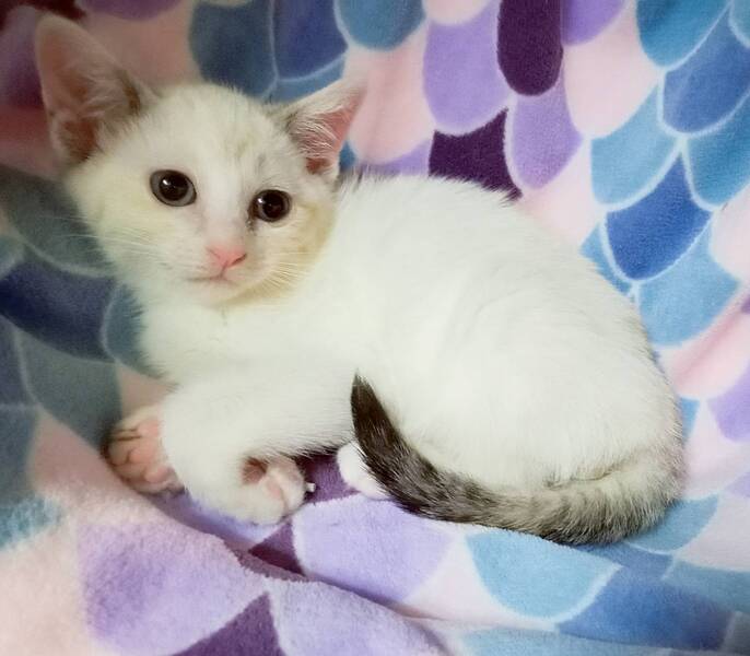 | 特徴(性格など) | 淡いブルーアイズのシャムミックスの女の子です。 臆病ですが、攻撃性はありません。 人と猫なれを毎日頑張っています。 イクラと姉妹です。 |
