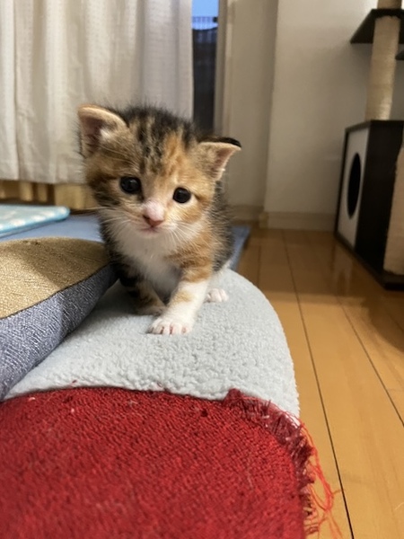 | 特徴(性格など) | ☆☆☆ご希望の方は、以下のアンケートフォームにご記入の上、送信してください☆☆☆ ねこ親希望アンケート→ http://chibawan.net/contactform_cat 【猫No】3928 【愛称】ふう 【性別】メス 【年齢】推定5週(25/05/20頃生) 【毛色】三毛 【体重】620g(25/06/22現在) 【状態】初回ワクチン接種済(25/06/19)、血液検査(エイズ-・白血病-)、検便検査(問題なし)、駆虫薬塗布済 【預かり場所】埼玉県草加市 【日記】URL:https://www.instagram.com/naruru0710 アカウント:naruru0710 【経緯】千葉県動物愛護センターより引き出し 【性格】トロンとした可愛らしいお顔ですが、怖いもの知らずの活発な女の子です。 兄弟のらいくんとのにゃんプロは負けていませんよ!! 食後の腹踊りはとってもキュート♡ 甘えん坊のおしゃべりさんで、人が大大大好きww 何事も飲み込みが早く、とってもしっかりしたおりこうさんです。 たくさん遊んだ後は、ベットに戻ってスヤスヤ寝ています。 天真爛漫なふうちゃんを見ていると、ついつい微笑んでしまう天使のような可愛さです。 生まれてから兄妹仲良く成長してきたのでペアで迎えてくださる事が理想ではありますが、一人っ子でなければ1匹譲渡は可能です。 快食快便、トイレは只今勉強中!! 【補足事項】お届けは、不妊手術・マイクロチップ装着などの医療処置が終わってからを予定しています。 【その他】完全室内飼育で終生愛情を持って、ふうと暮らしていただける方、脱走対策を労を惜しまず入念に施して下さる方、定期的なワクチン接種や、その時々において必要な医療処置等の健康管理を約束していただける方からのお問い合わせをお待ちしております。 ※大変申し訳ないのですが、猫が幼齢の為、単身の方・同棲カップルの方・長時間のお留守番・50歳以上の方からのお申し込みはお断りする場合がございますのでご了承の程よろしくお願いします。 |