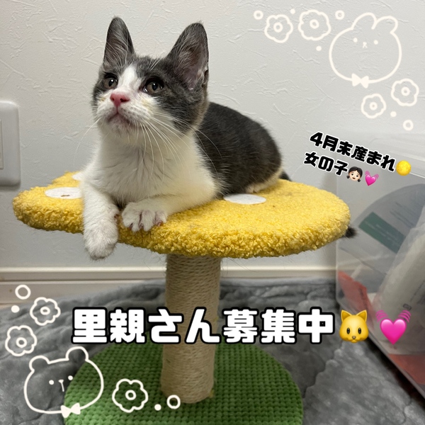 | 特徴(性格など) | 推定2ヶ月、4月末産まれの 美人な女の子っ??? はーちゃんです?❣️ 目が腫れるほどの風邪の症状が ありましたがとっても元気な おてんばな女の子になりました?? おもちゃで遊ぶの大好きっ!! 大きい音等にびっくりして隠れたり することもありますが、 おもちゃを振ればどこからともなく 猛ダッシュでやってきます?❣️ たくさんの愛情を注いでくれるご家庭に 譲渡したいと思っていますので、 ご検討お願い致しますっ?? |