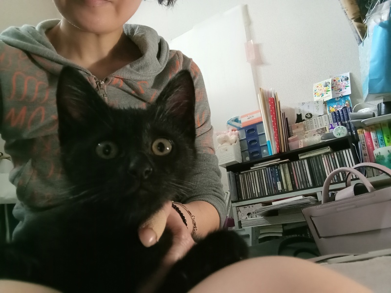 | 特徴(性格など) | 元気な男の子の黒ネコちゃんです! ママと同じく、成長するに連れてかわいいエンジェルマークが発現するかも☆ おもちゃで遊ぶの大好き! 撫でるのも抱っこも平気! おトイレも初日から完璧の、賢くてちょっとさみしがりな、とーっっってもかわいい子です!! |