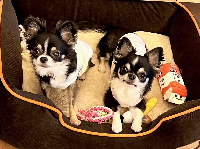 | 特徴(性格など) | 兄弟の様にラブラブで仲良しの兄弟です(別々のブリーダーさんから嫁いだ子達) カイト(ロングコートチワワ:ブラックホワイト)4歳 しおん(ロングコートチワワ:ブラックタンホワイト)3歳半 カイト:とても愛情深く抱っこ好き。 殆ど鳴かない。明るく賢く愛情表現が多め。 しおん:とても愛情深く抱っこ好き。 殆ど鳴かない。優しく賢く愛情表現が控えめ。 一緒に寝るのが好き。 |