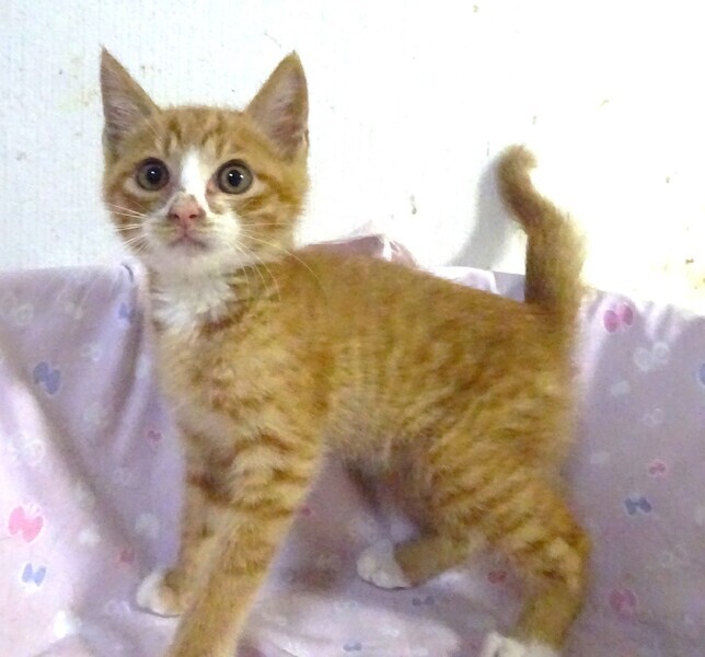 | 特徴(性格など) | 仮名: 茶の助、オス 毛色: 茶白、尻尾長い 性格: 少し臆病なところがあります。 寂しいのか、人の声を聞いたり姿を見たりすると鳴いて呼びます。 初めから威嚇することはなかったので、威嚇なく抱っこ出来ますが、知らない人がくると奥の方に逃げて様子を見たりします。 最終的には出てきますので、怖がりで慎重な性格と思います。 抱っこすると甘えてきます。 兄弟がなく一人で、まだ隔離しているところですので、他猫、大人猫とうまく付き合えるかはわかっていません。猫社会の学習をして貰いたいので、先住猫ちゃんがいるお家でも大丈夫と思います。 まだ小さいので、暫くは留守番時間が短めのお家が良いかと思います。 お届けは千葉県内で千葉市幕張から車で1時間位を希望しています。 |